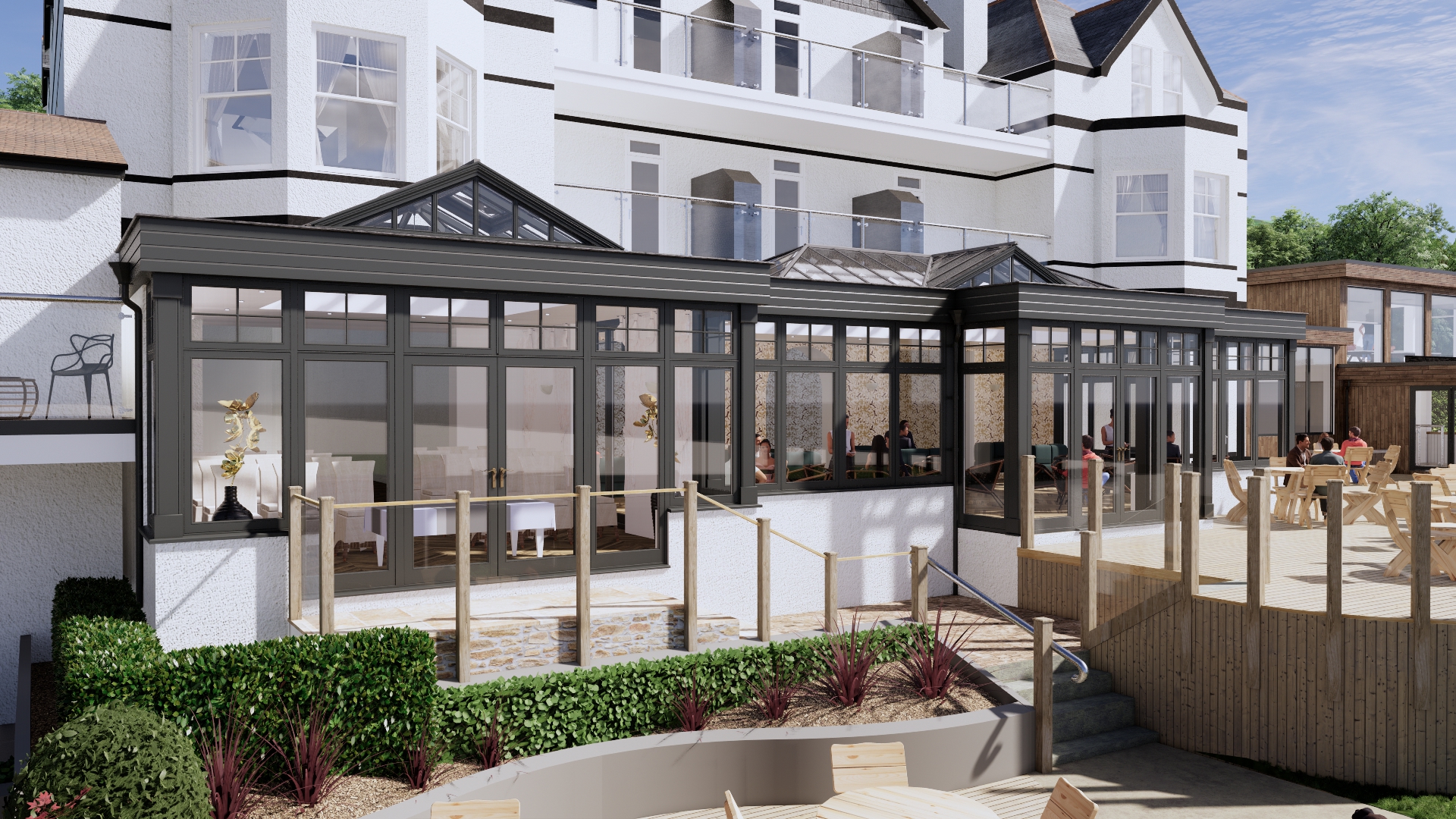 The hotel, owned and operated by Stephen and Jose Baker, called in David Sailsbury to design and install the new orangery, which is the latest phase of Carbis Bay Hotel’s refurbishment and investment programme